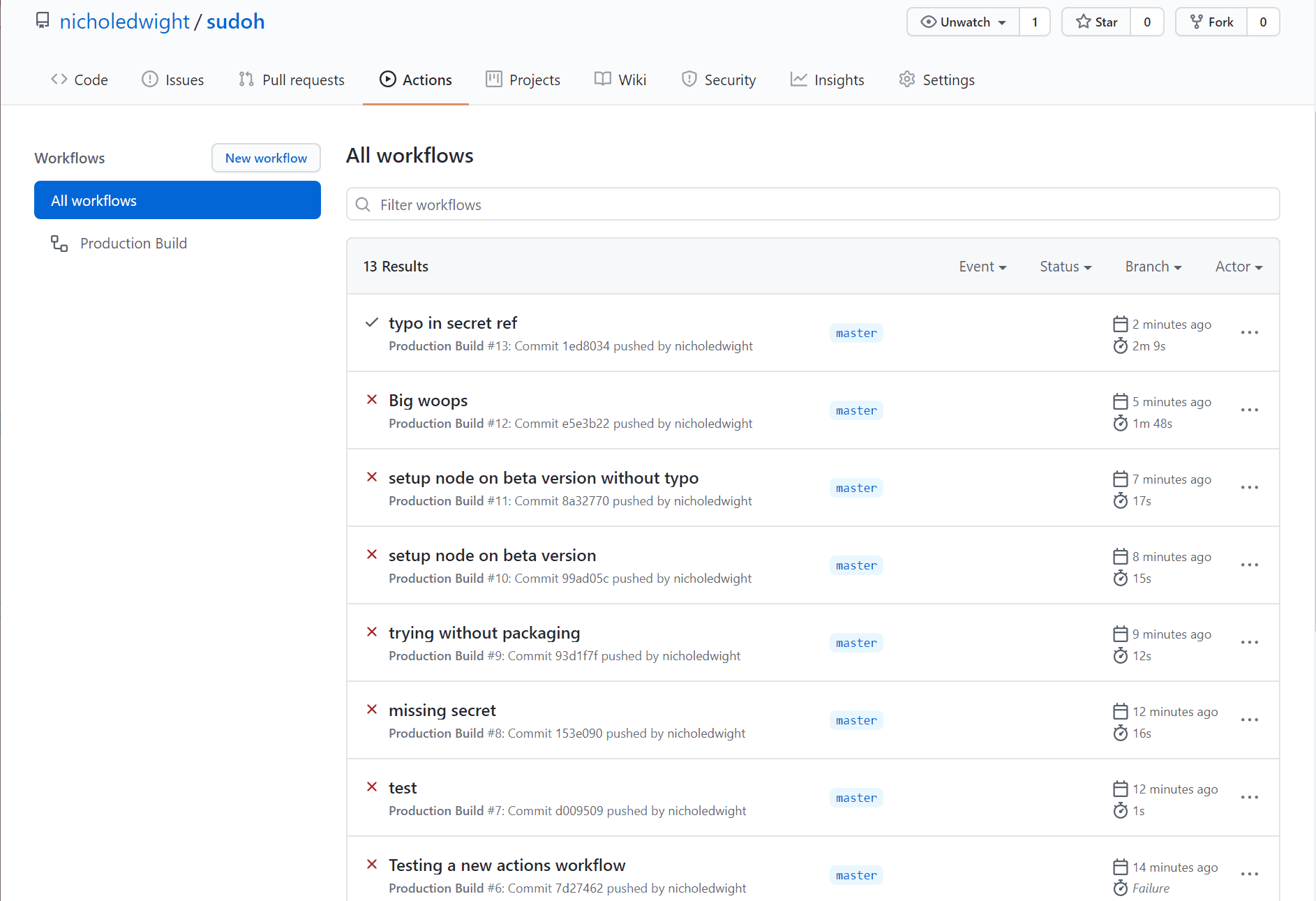 You should now be able to push your complete workflow file back up to your branch that triggers your workflow and watch the magic happen from the Actions tab! Woop, woop!